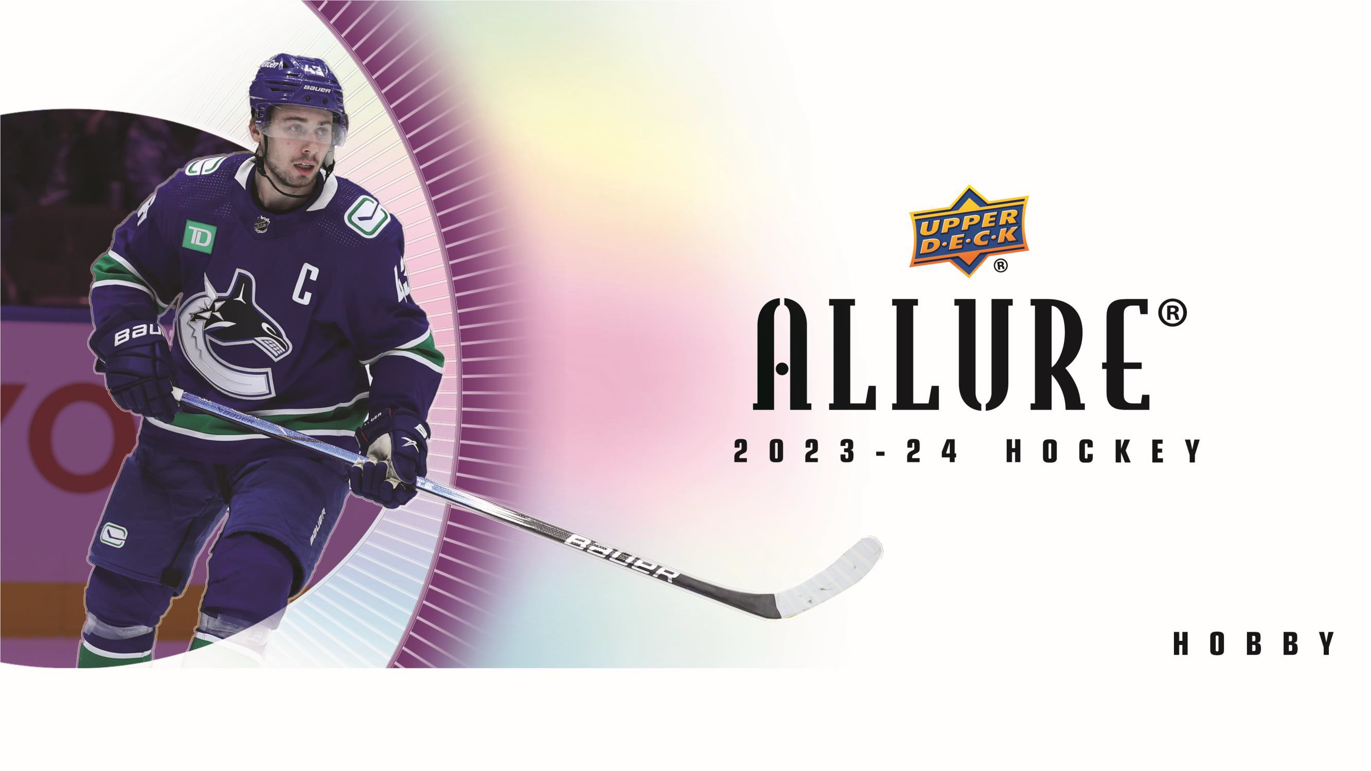 Allure Hockey is back with a 150-card Base Set featuring 100 veteran standouts and 50 top rookies - the latter falling one (1) per pack, on average! The parallel lineup is stunning and diverse. From color and pattern variations to color and pattern variations with autographs and/or memorabilia, Allure Hockey appeals to a wide variety of collectors, especially auto, player and set collectors. Collect a Black Rainbow, Red Rainbow or Orange Slice veteran or rookie parallel card in every pack, on average! Look for new Pink Lemonade and Pink Lemonade Auto (#d to 5) parallels, as well as the returning and coveted Blue Line Auto (#d to 35), Blue Line Auto Jersey (Varied #ing), Purple Diamond Auto (#d to 10), Purple Diamond Auto Patch (#d to 10), Golden Treasures (#d 1-of-1) and Golden Treasures Auto (#d 1-of-1) parallels. The veteran jersey and patch swatches are game-worn!