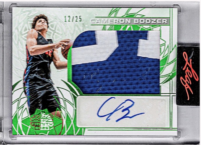 This set will feature base autographs which feature ALL on-card autographs from Cameron and Cayden Boozer, with some special rare inscriptions and dual On-Card Autographs. These are the first cards that Cameron and Cayden ever signed. Incredible chase cards that are some of the most collectible in the industry. Look for Autographed Patch Cards from Cameron, Cayden and even a rare triple with their father Carlos Boozer. Many of these feature logo patches, tag patches and nameplate patches.