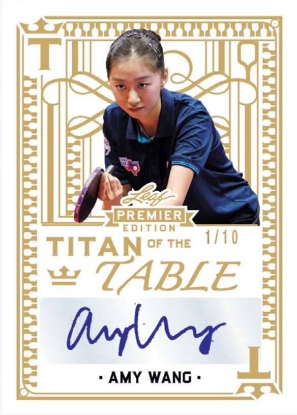 Leaf Trading Cards is proud to bring you the Premier Edition of Major League Table Tennis trading cards! Each box contains 4 base and parallel cards, with each foil parallel limited to 50 or less. Each box also includes 5 autograph cards, with every autograph card numbered to 50 or less. Look for rare Titan of the Table autographs, limited to just 10 each. Find Global Rally insert autographs of select players, featuring their home nations and limited to 10 or less.