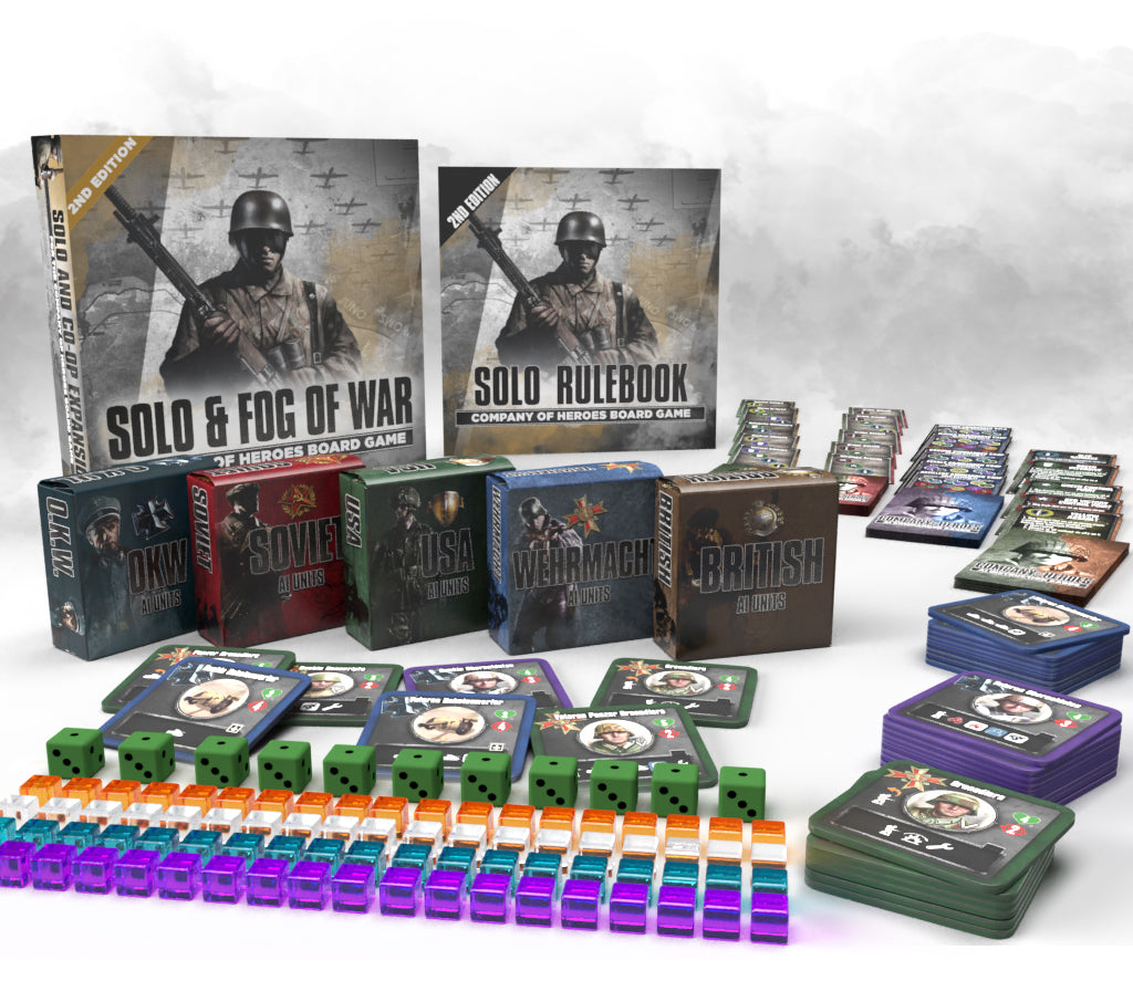 The 2nd Edition Solo and Cooperative Expansion is a completely revised product drawing on the strengths of the 1st Edition but now with a much more intelligent A.I to play against or with a human player's team. The A.I. now secures resource and victory control points like a human player allowing for standard victory conditions rather than the previous abstract round limit of 1st Edition. Players can also use the 250 high quality acrylic unit tiles to play in multiple Fog of War modes including the 45 minute Fog of War Lite Mode for quick games.