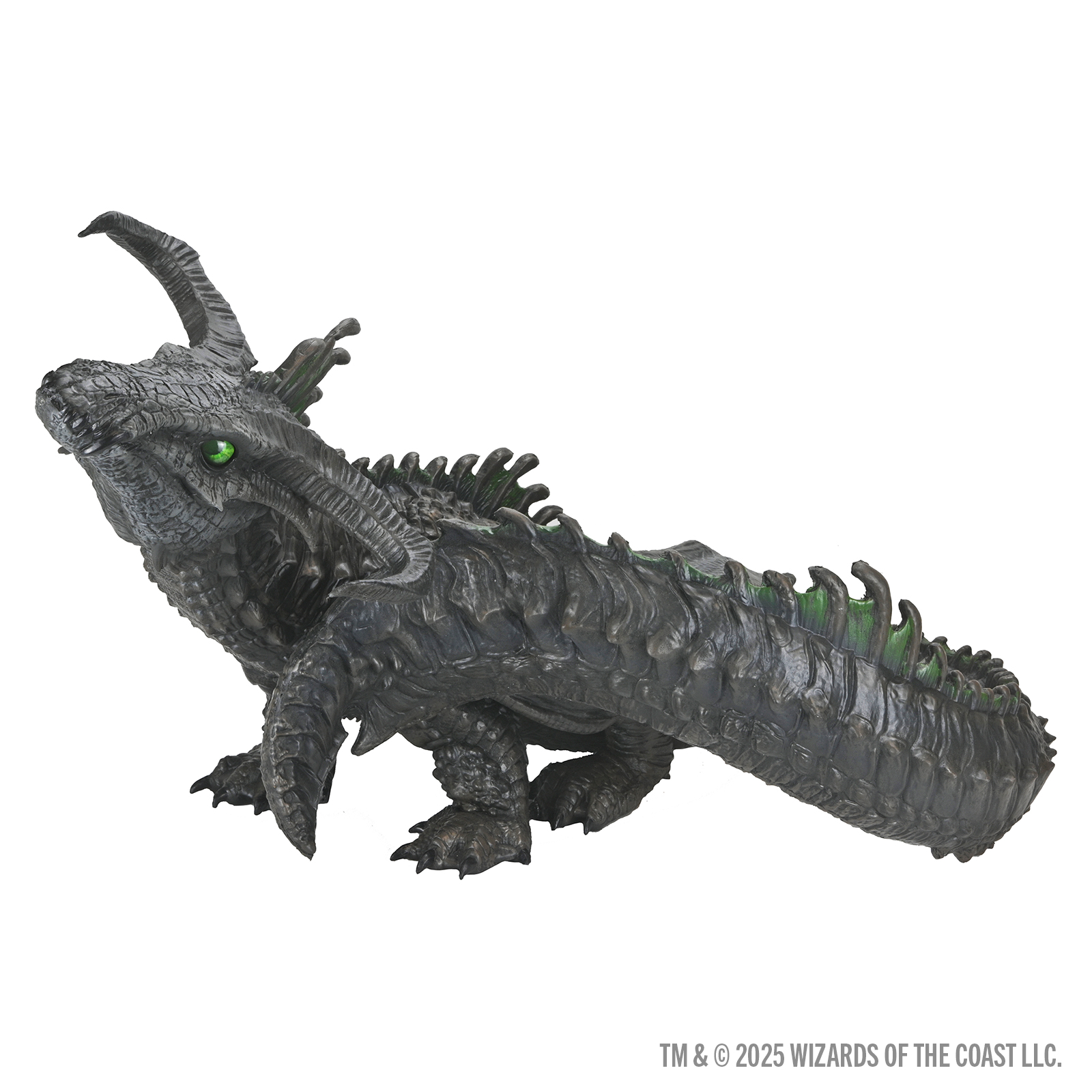 Inspired from the 2025 Monster Manual's black dragon, this black dragon wyrmling foam figure is the perfect addition to your game room, store, and home. It is practically begging for head pats - just watch out for the acid breath! Standing 1.5 feet tall, the D&D Replicas of the Realms: Black Dragon Wyrmling Foam Figure is made from lighweight, durable foam and handpainted to show off every scale, spine, and claw.