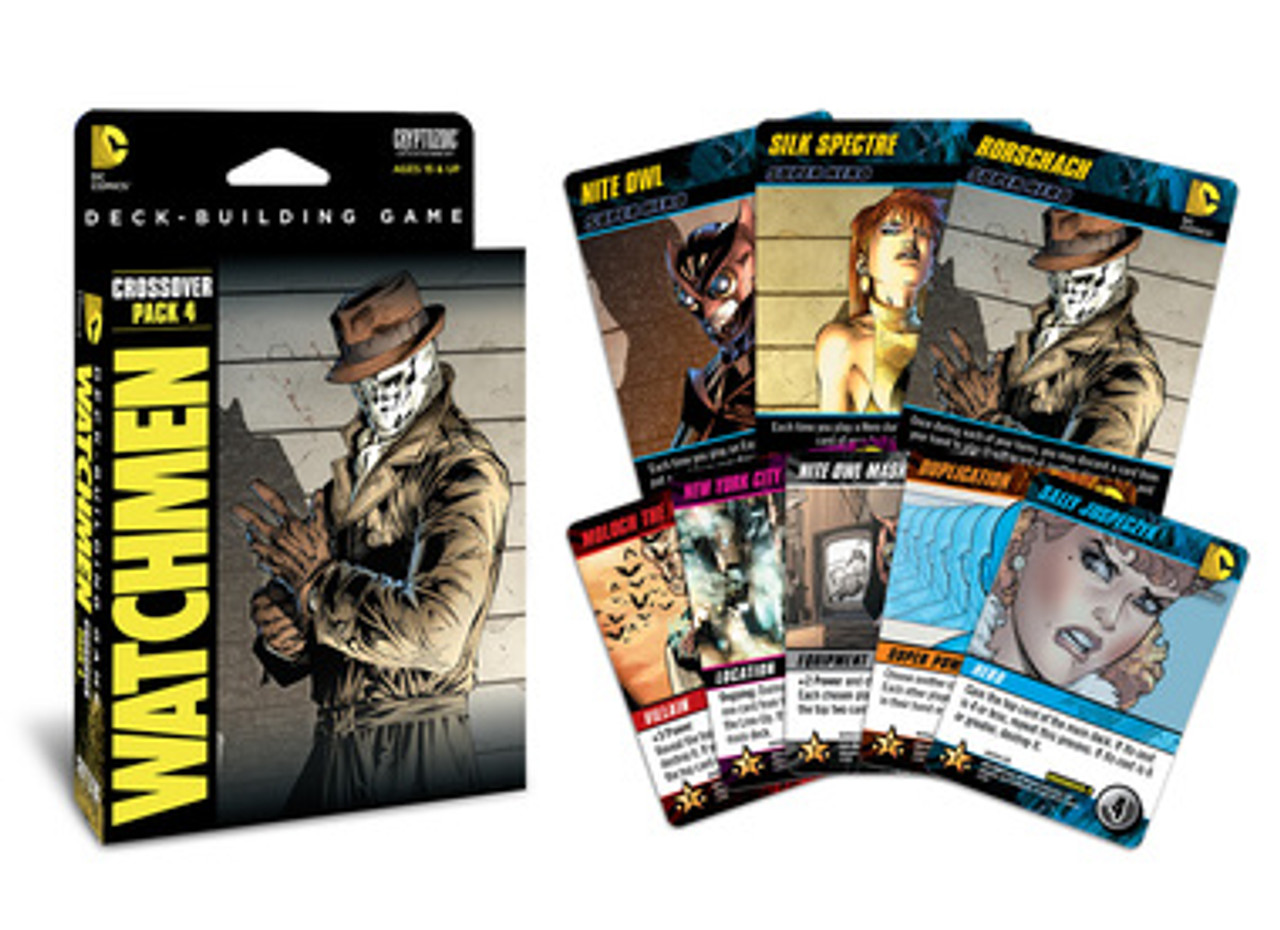This Watchmen set adds a new element to deck-building games: Hidden Roles! As in the original story, one of the members of the team has their own ideas on the best way to solve the world’s problems. The Villain must work towards his or her secret plot while not making it too obvious. “Loyal” players will strive to overcome various challenges, though the “Villain” of the story can disguise his or her intentions by helping with these challenges as well. Should the Mastermind Plot become hatched, the Loyal players will certainly have their work cut out for them…