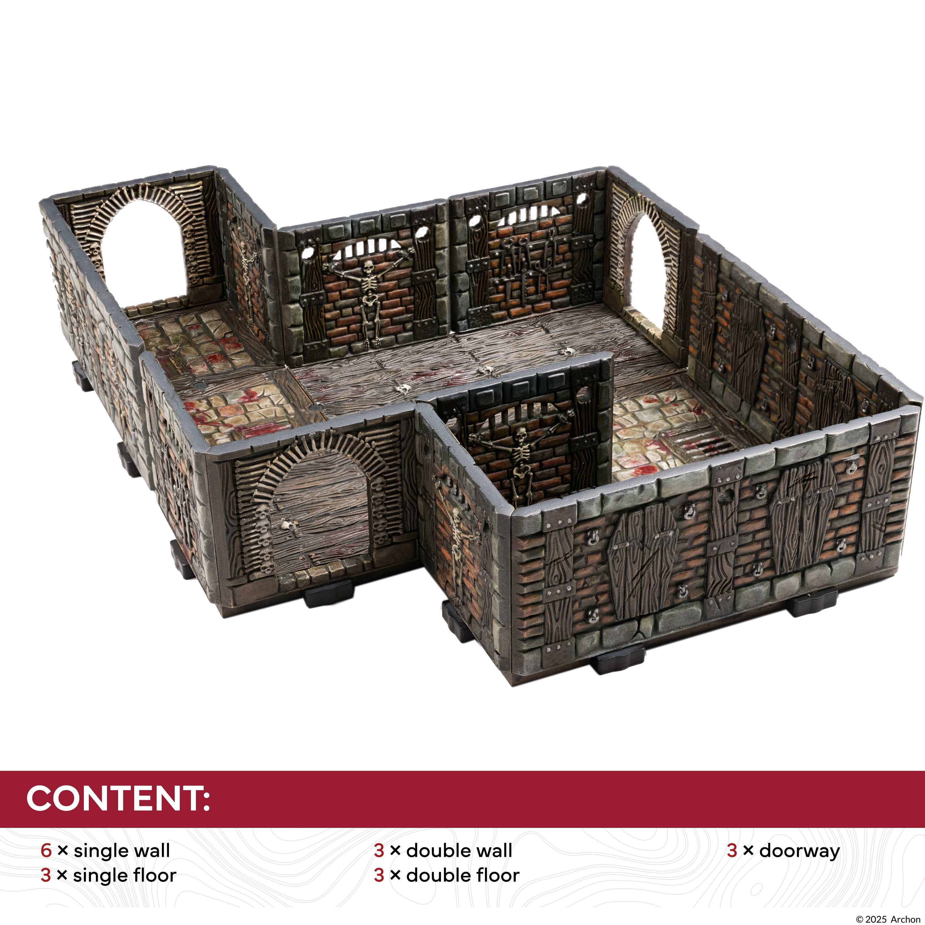 Product Configuration: 3x long walls, 6 walls, 3x floor tiles, 3x long floor tiles, 38x floor clips, 10x wall clips