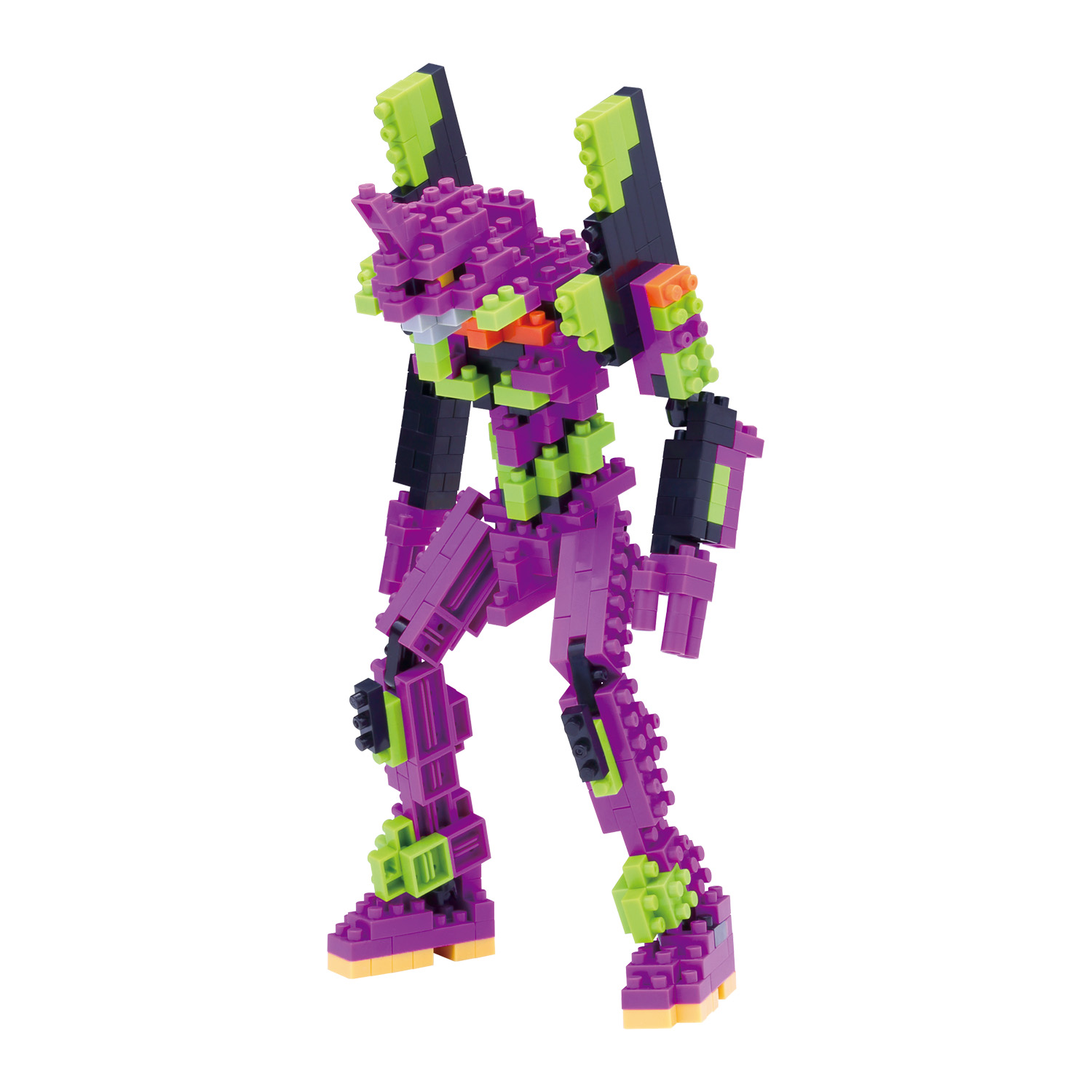 Evangelion Test Type-01 from nanoblock's Sights to See Series stands approximately 5.90" tall and has 370 pieces. Difficulty level is 3/5. This kit features all the details one would expect and excellent likeness to the character.