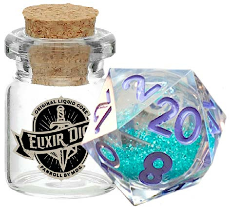 From our innovative Kickstarter, Elixir dice are infused with glittery liquid cores that swirl when rolled. Each set is handcrafted and polished to keep their beautiful sharp edges.