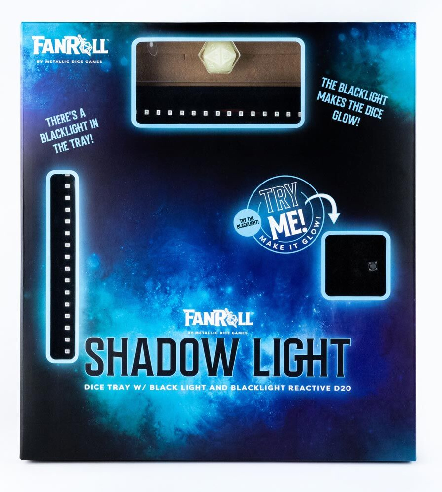 Introducing the newest technology to hit the tabletop, Shadow Light Dice Trays. These dice trays have black lights incorporated into the side of the tray to illuminate your tray. Each tray comes with a specialized D20 made to interact with blacklight and bring an incredible glow to your table.
