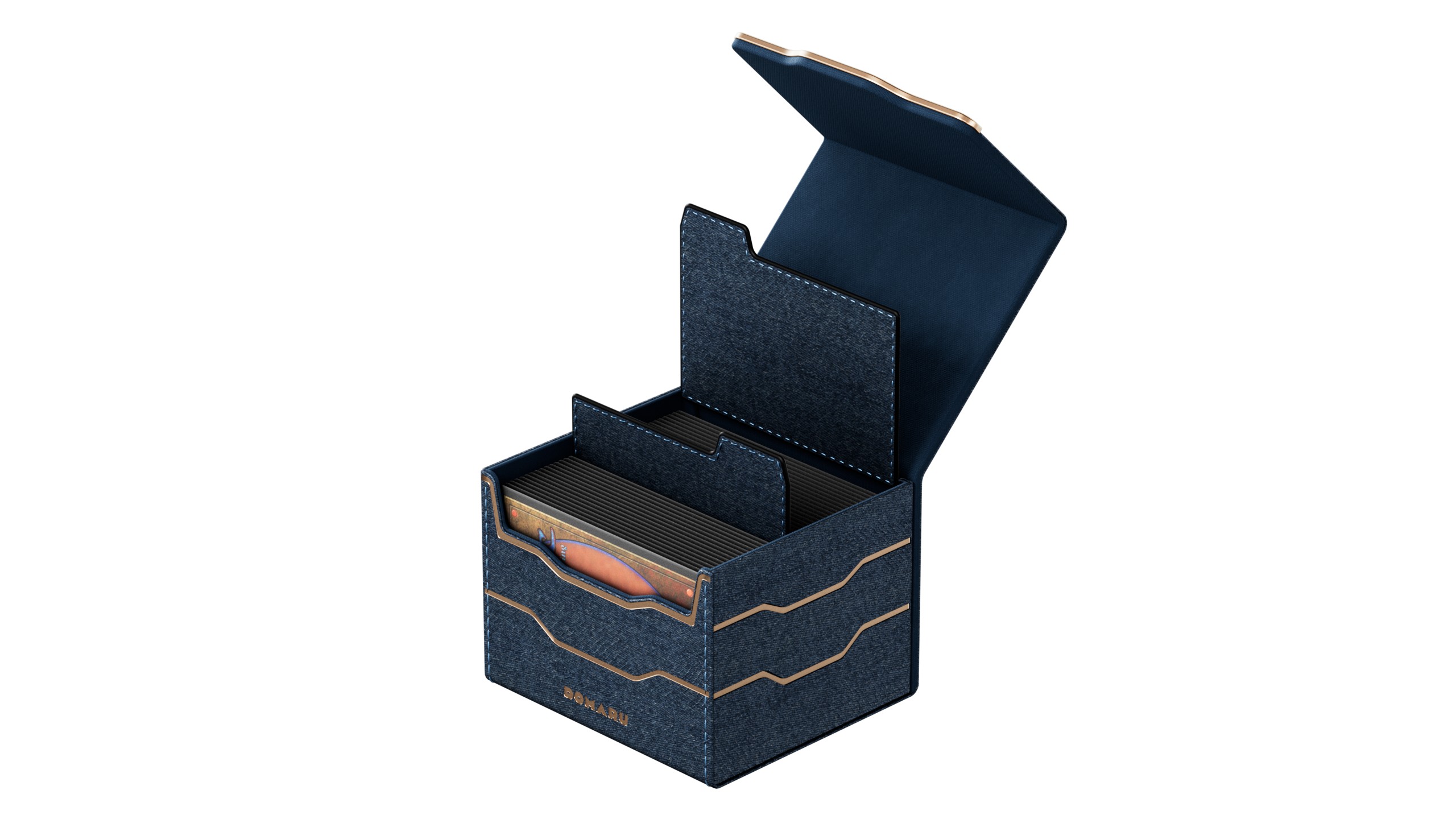 The DOMARU Armory Collection is our latest deck box line, built for strength, durability, and a commanding presence at the table. Featuring refined metallic details, a rugged textured exterior, and strong magnetic closures, each Armory box delivers uncompromising protection for serious play. Side Loading. Fits 100 double-sleeved cards. Includes 2 leather dividers. Strong Magnets. Sturdy textured leather materials and metallic details.