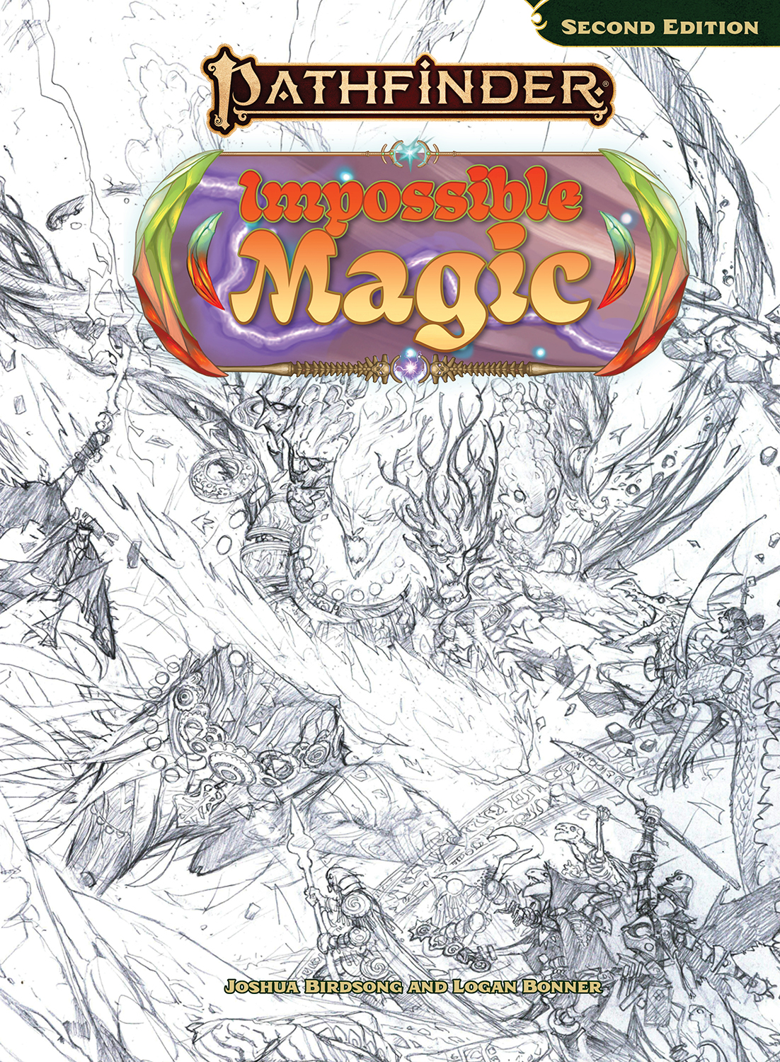 Salle, Mark Seifter, Shay Snow, Kendra Leigh Speedling, Tan Shao Han, Shu Qing Tan, Mari Tokuda, Ruvaid Virk, Grady Wang, Andrew White, Landon Winkler, and Isis Wozniakowska.This sketch cover edition features a beautiful image of the original pencil sketch of the Pathfinder Impossible Magic cover by superstar artist Wayne Reynolds and is offered exclusively to Paizo's hobby retail partners and direct sale on paizo.com.