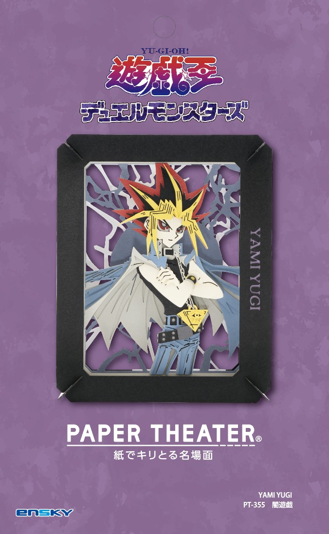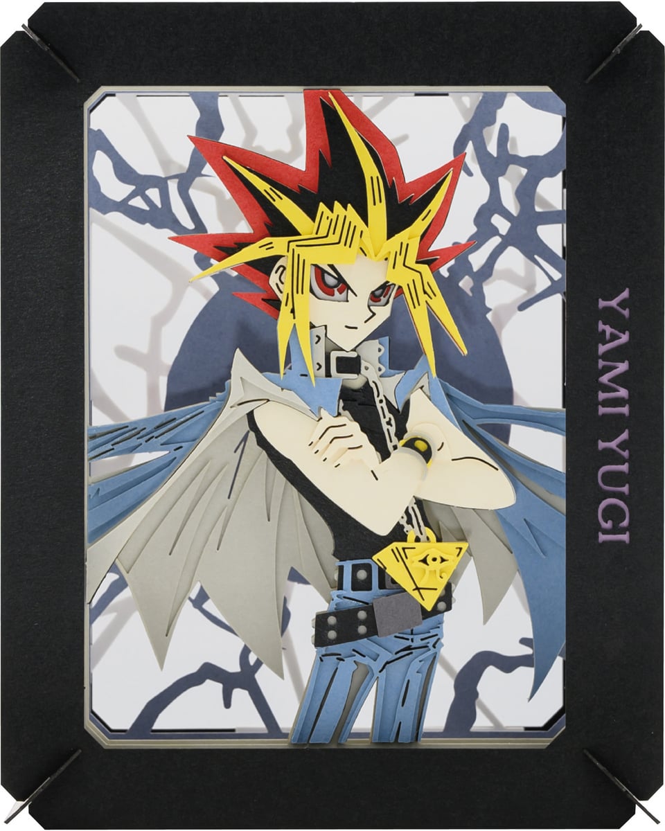 A Paper Diorama Featuring Yami Yugi from Yu-Gi-Oh. Paper Theater craft kit is made by layering laser-cut precision paper. Kit contains: Paper parts, Assembly Instructions in English and with images. Completed Size: 3.1" x 3.9" x 1.6" Difficulty Level: 2 of 5 Adhesives are not included in the kit
