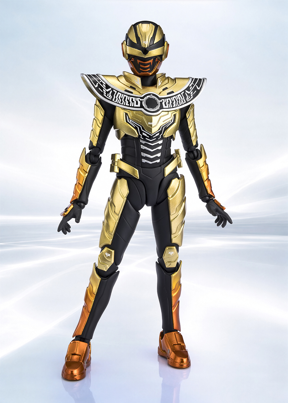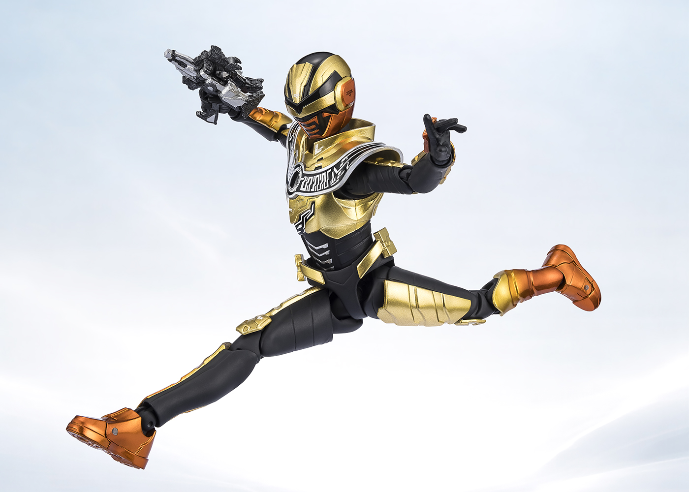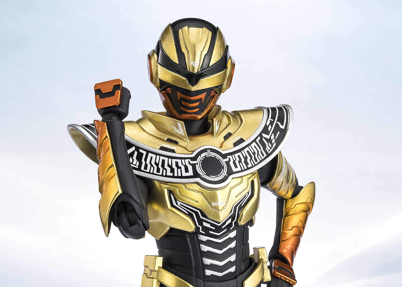 S.H.Figuarts Gabin Luminous" is sculpted with a range of motion and proportions that are only possible with this figure. The figure is sculpted with meticulous attention to the body lines, including a natural connection from the chest to the waist. The details of the body are also finely rendered. The gold and orange metallic finish of the entire body replicates the texture seen in the show. The "Gabarion Trigger," which serves as both a transformation item and a weapon, is included, and the "Emolgear" is detachable. The "Gabarion Blade" is also included, allowing for the recreation of various action scenes. A (open) Galactic Federation Police notebook is also included.