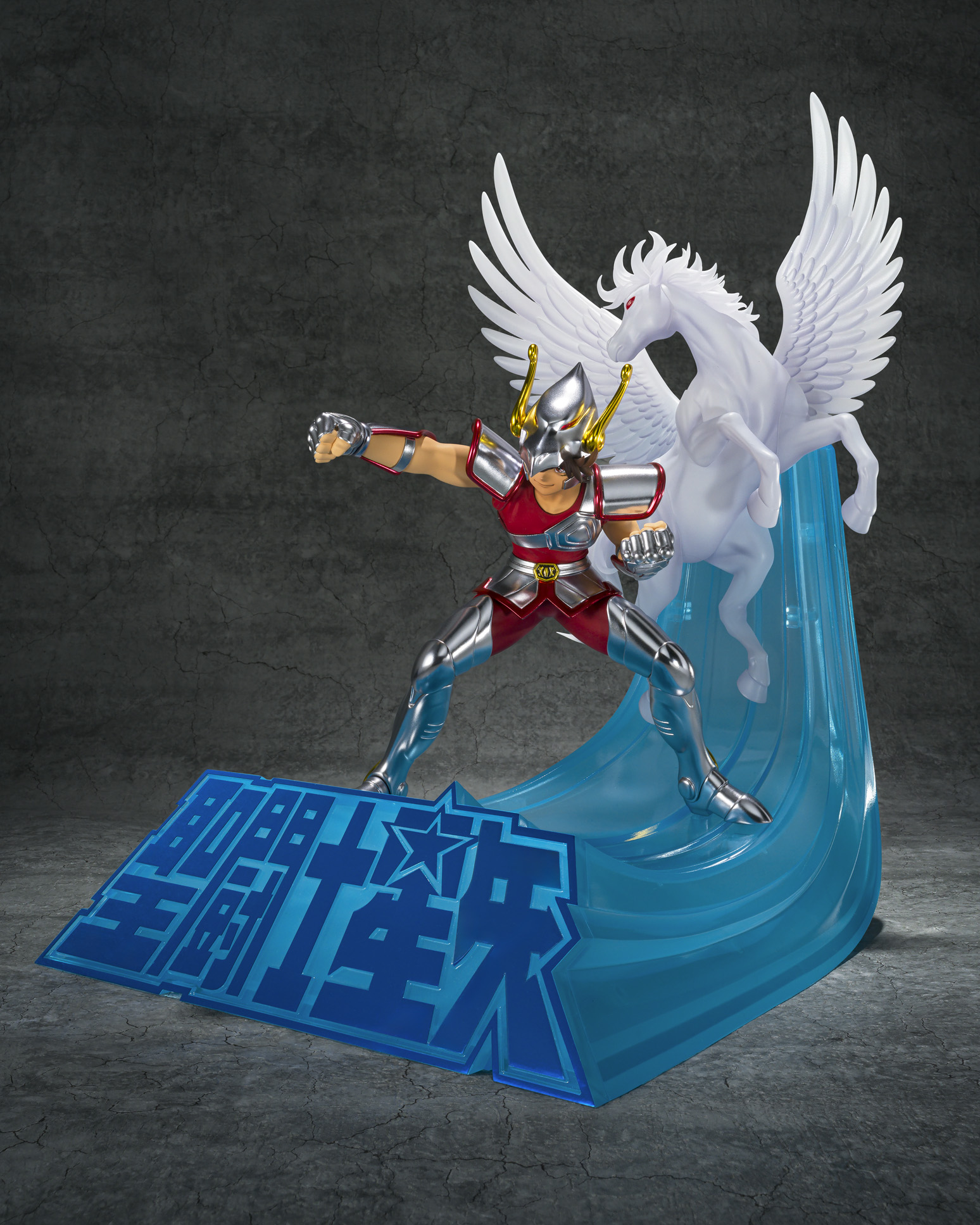 From the TV anime Saint Seiya, "Pegasus Seiya (First Bronze Cloth)" joins Figuarts Zero Touche Metallique! Inspired by the anime's opening, the statue captures Seiya in dynamic 3D. The Cloth's metallic look is recreated with two finishes- plated and painted- based on a functional interpretation of its parts. The base evokes the impactful opening sequence where the Saint Seiya logo bursts forward, and a Pegasus is positioned behind Seiya for added presence. [Set Contents] Main unit (including base), Collection sheet