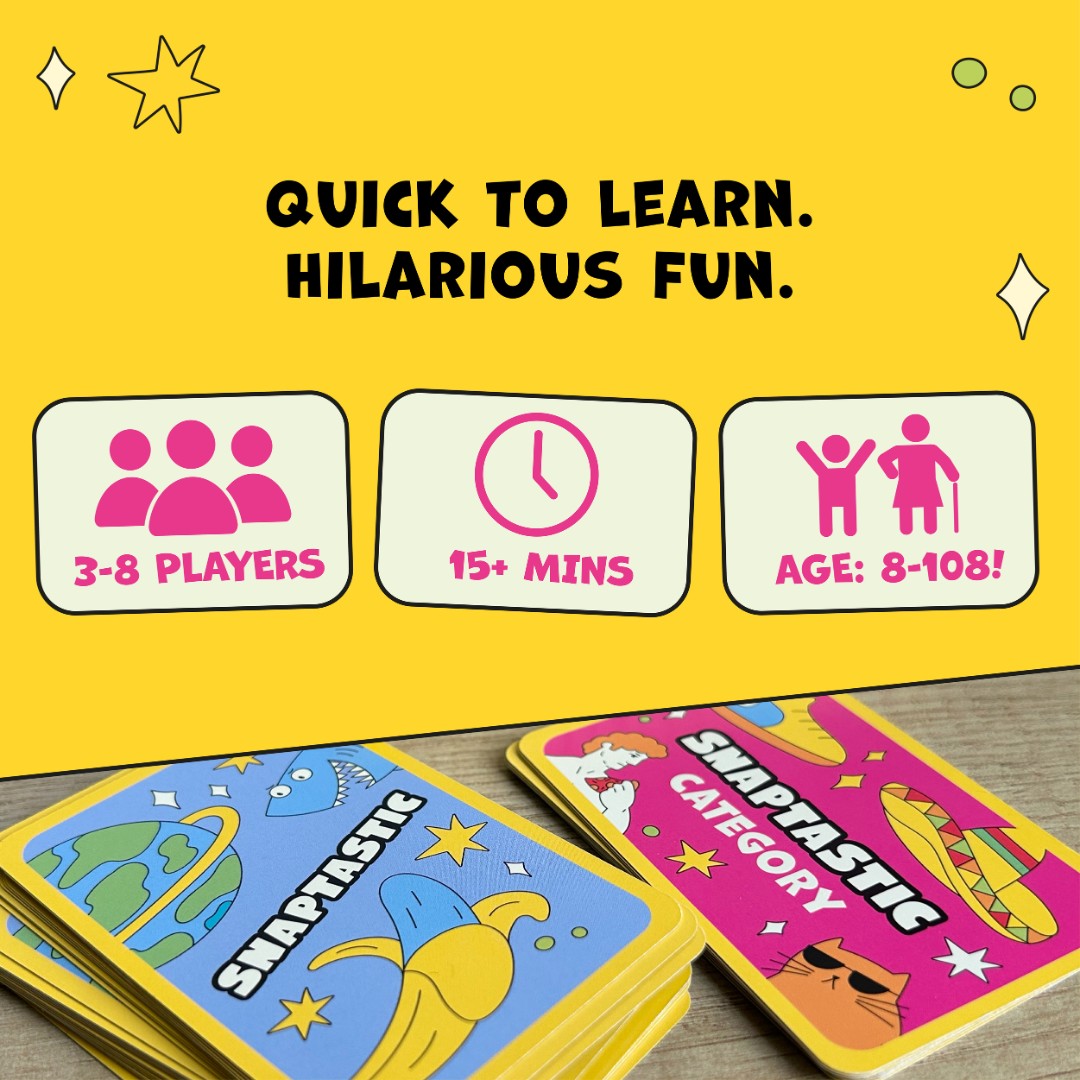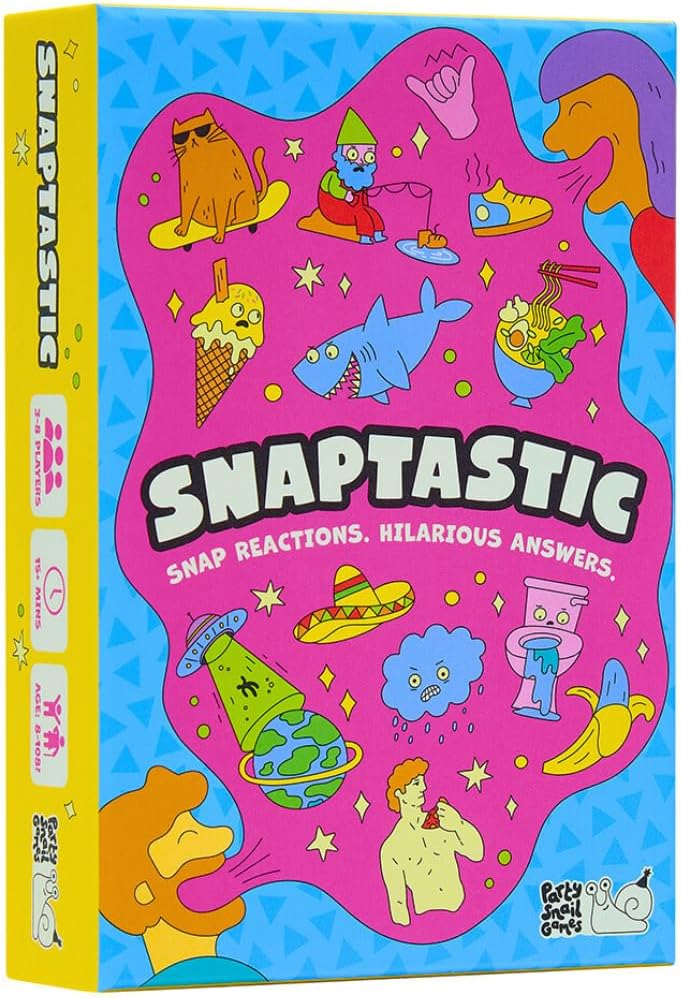 Snaptastic (new 2025 larger box): The hilarious gut-reaction party game. Quick to learn. Laugh out loud game for kids, teens, adults & families. Perfect size for home or travel. Small box, huge fun!