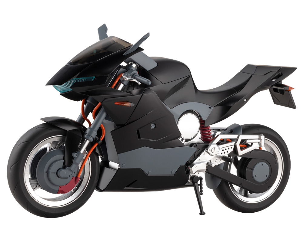 A highly versatile black color that can be used in any scene! A color variant of the Extreme Sports Bike joins the Kotobukiya exclusive lineup. A first for Kotobukiya's original bike lineup, this is a standard, non-combat motorcycle. However, thanks to designer F, who also designs Megalomaria and M.S.G, it pairs exceptionally well with various series. At 1/10 scale, the total length is approximately 195mm. Sized to be ridden by character models with a total height of about 160mm, impactful scenes can be created by combining it with kits such as Maria Kagaribi [Dress Code] or Emulator from the Megalomaria series. Enjoy this snap-fit bike kit that is just as easy to assemble and enjoy as character model kits! *Rui Saotome[Touou High School Tracksuit]Dreaming Style Midnight Onyx requires the use of the riding body to board the bike. [Features] The handlebars and tires are linked, allowing the steering angle to be changed. The tires can also freely rotate, allowing for manual rotation. The tandem steps at the rear of the vehicle can be deployed. In addition, a 3mm connection point is located at the bottom of the vehicle's body, allowing it to be displayed using the separately sold Flying Base. [Full-Face Helmet] By pulling out the top part of the helmet and the internal base, separately sold Sousai Shoujo Teien face parts can be used. This allows the expression to be changed to various compatible characters, such as Rui Saotome. The visor can be opened and closed. It is molded in clear plastic so that the attached face part can be easily seen. The interior of the helmet was meticulously sculpted to match the bangs and nape of Rui. It is compatible with Megalomaria (female body type) face parts, allowing for various combinations. The skin tone at the neck uses Skin Color C, allowing the face parts of a wide range of characters to be attached. *Regarding helmet compatibility: Sousai Shojo Teien's Ao Gennai and Bukiko Kotobuki use unique standards so they are not compatible with the helmet. *The helmet is the same as that included with Rui Saotome[Touou High School Tracksuit]Dreaming Style Midnight Onyx. [Gloves] Three types of gloved hand parts are included: Open, Closed, and Gripping Handlebars. These hand parts can be attached kits from the Sousai Shoujo Teien series and Megalomaria series. [Coloring] Bike: Black 1, Black 2, Gray, Smoke Gray, Clear Turquoise Green, Clear Orange, Clear Red, Orange, Red, Silver Full-Face Helmet: Black, Clear Black, Skin Color C, Milk Tea (Hair Color) Gloves: Gray ?Included Items: 1. Extreme Sports Bike x1 2. Glove Parts x3 Types Left/Right (Open, Closed, Gripping Handlebars) 3. Full-Face Helmet x1