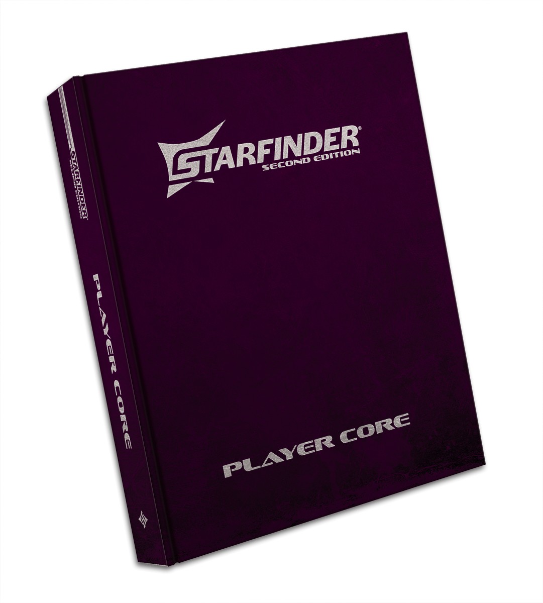 This deluxe special edition is bound in faux leather with metallic deboss cover elements and a bound-in ribbon bookmark. The perfect way to commemorate Starfinder’s new edition!