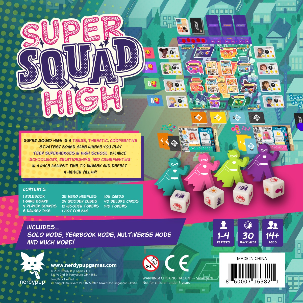 Super Squad High is a cooperative teen superhero adventure game for 1 to 4 players. A crime wave has struck the city, and only Super Squad can save the day! Fight crime, keep up your grades, and become besties or sweethearts with your classmates to learn clues and unmask the villain behind the crime wave. The twist — the villain is secretly one of your classmates!