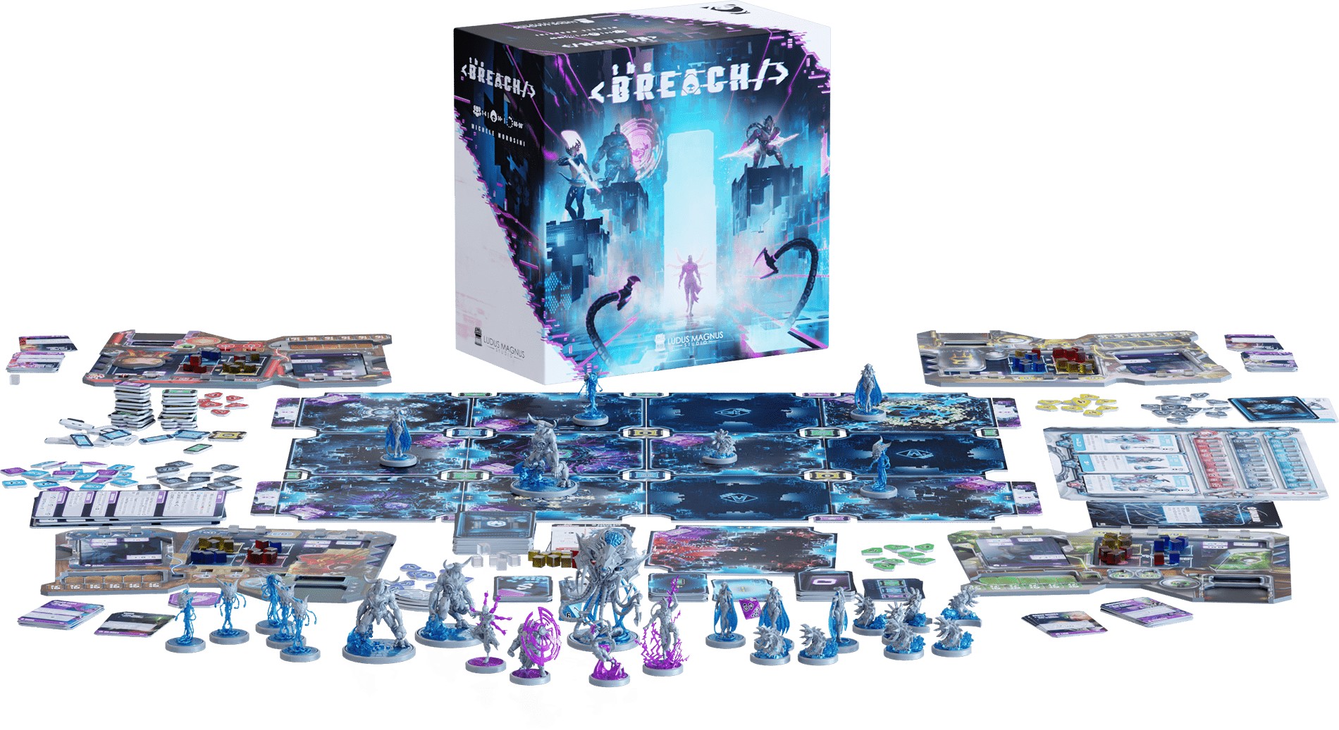 Explore Gene.sys, a virtual universe of mysterious origin currently controlled by the Achab Corporation, and be the one to discover the secrets behind its corruption. Digital rebels known as Breachers - realised with exquisite, highly detailed dual-plastic miniatures - will face dangers from the Corporation and each other as they race to discover the secrets of the database before its security evolves beyond their limits. Players must defeat the powerful Guardians within Gene.sys, but to win they’ll have to hack the world around them and manipulate it for their own needs.