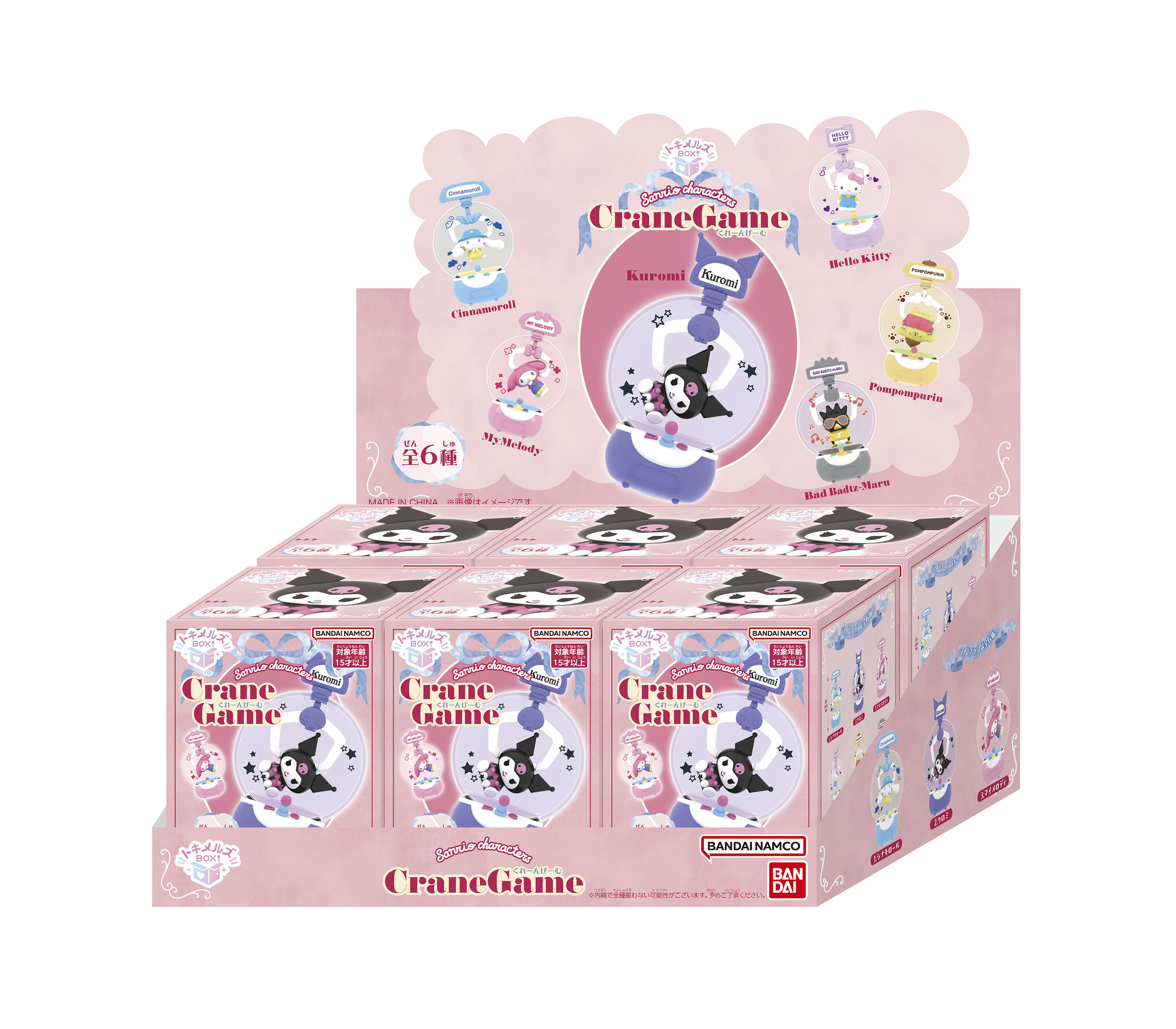 New from Bandai Lifestyle is Tokimelz BOX!, a new blind box series. Tokimelz is a portmanteau of the Japanese words for Thrill, Melt, and Surprise. Open it up and your heart will melt with adorable Sanrio figures. Tokimelz Box! Claw Machine features Cinnamoroll, Kuromi, My Melody, Hello Kitty, Pompompurin, and Bad Batsumaru caught in a claw in unique and cute poses. (Please note: product packaging displays "Crane Game" but final design will display "Claw Machine")