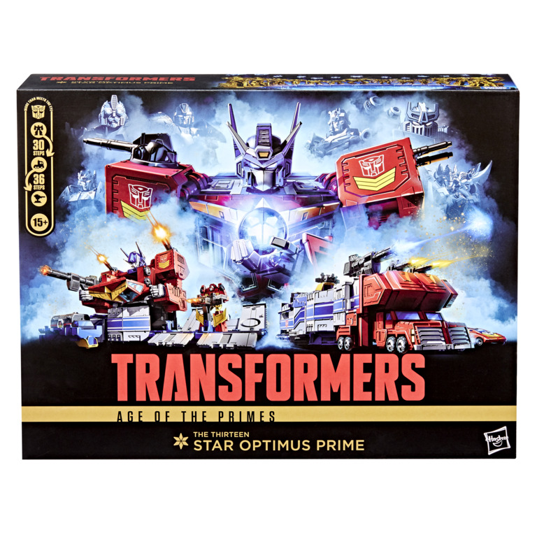 Unite your favorite characters from across the world of Transformers robots into your collection with the Transformers Age of the Primes Titan Class Star Optimus Prime action figure! This 15-inch (38 cm) The Thirteen Star Optimus Prime action figure features 3-in-1 conversion between robot, truck, and battle station modes. Includes Micromaster Autobot Hot Rod figure, MT-13 Microtrailer, tread unit, cannon blaster, shoulder blasters, ammo clip, swivel turret that becomes a blaster, Zodiac orb, and blast effects accessories. The Thirteen Star Optimus Prime figure is inspired by the Transformers universe and features articulated head, arms, and legs for awesome action poses. Transformers: Age of the Primes opens up the world of the Primes, the very first bots in Transformers mythology, a pantheon of Thirteen beings, each with a unique ability and personality. Collect different characters to create your ideal Age of the Primes lineup. (Each sold separately. Subject to availability.)