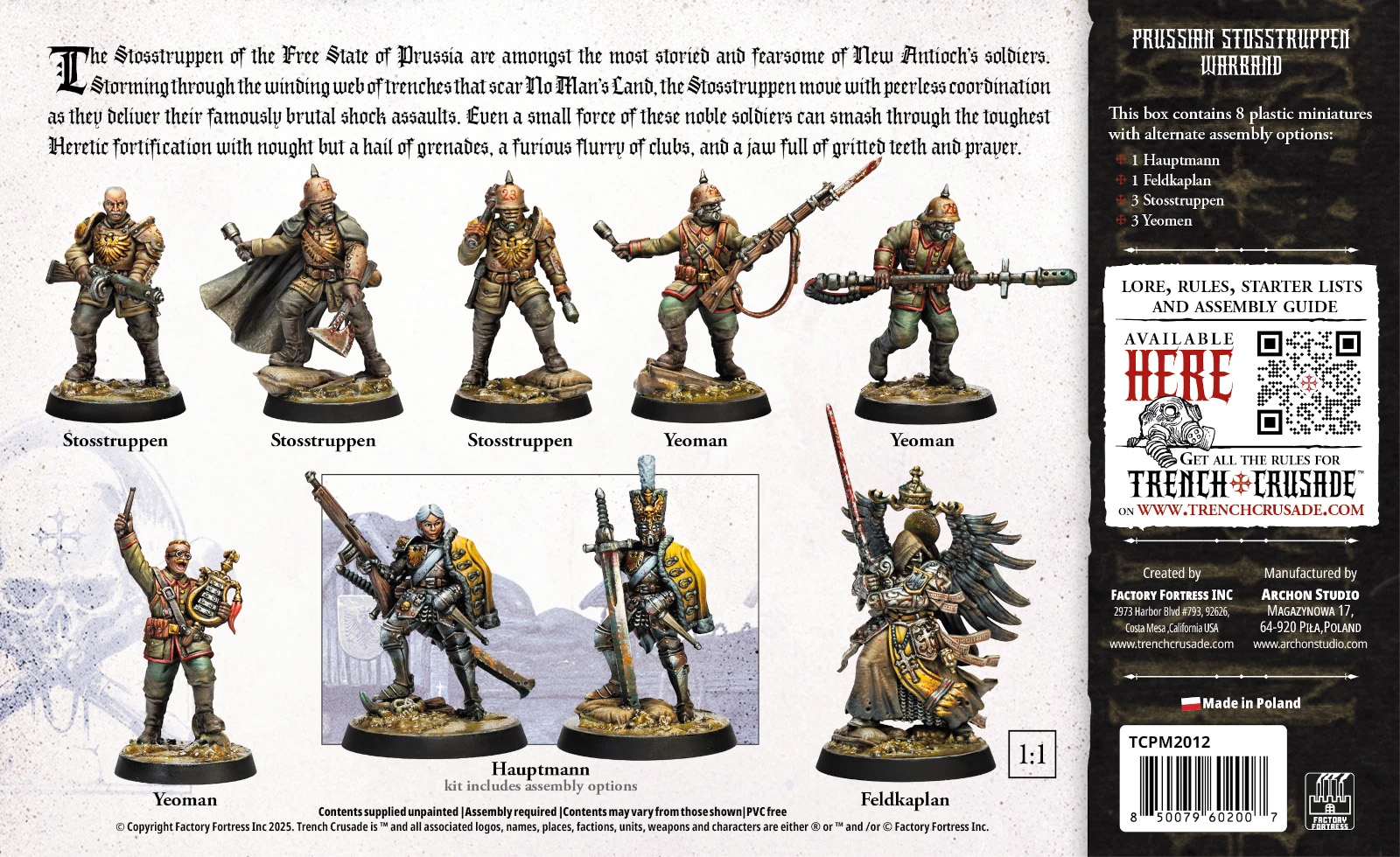 The Prussian Stosstruppen Warband box contains a complete starter force for the Free States of Prussia, a New Antioch variant.