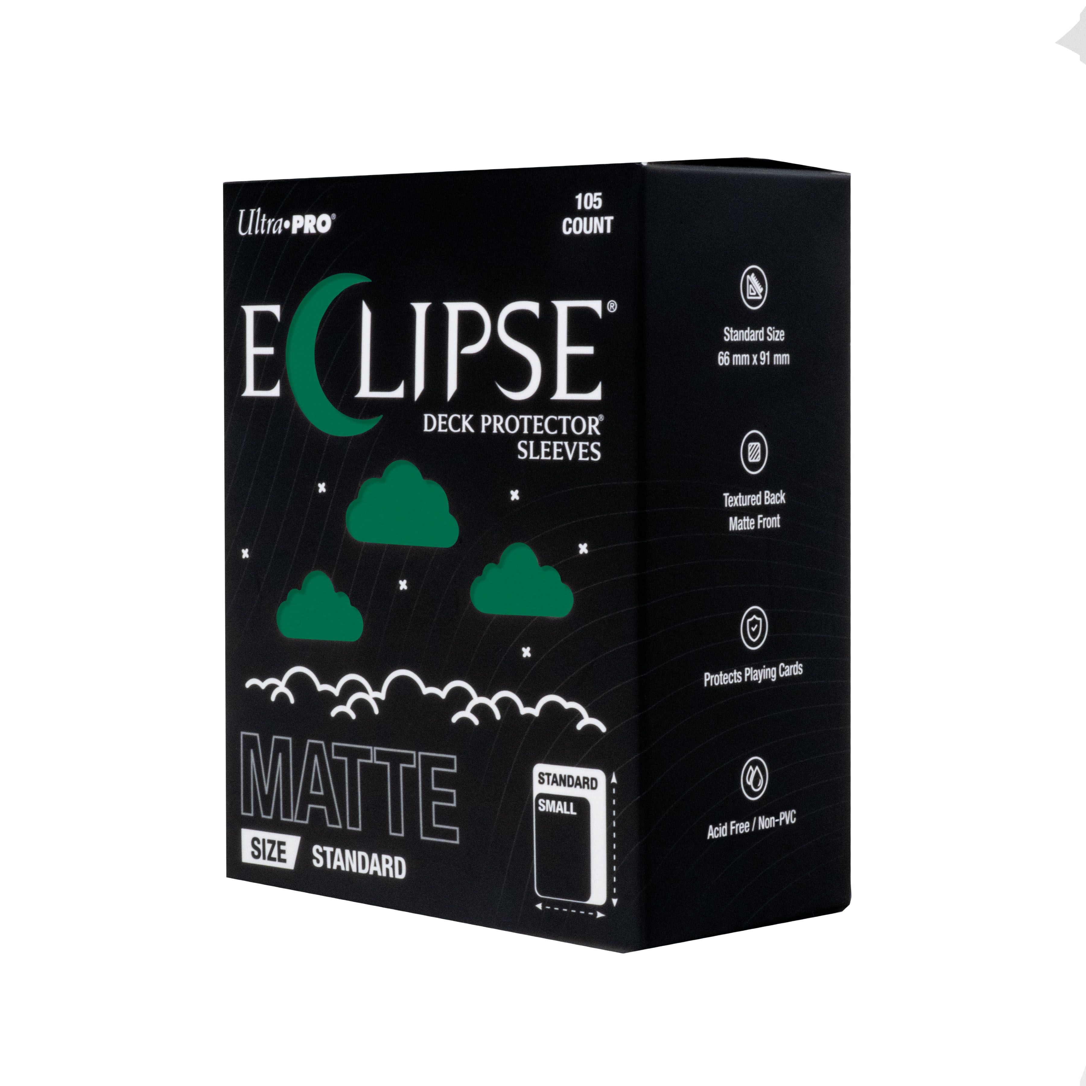 The next evolution of Ultra PRO's legendary ECLIPSE DECK PROTECTOR sleeves is here. Experience the enhanced texture, optimized shuffle feel, and the rigorously tested, consistent quality of the latest ECLIPSE formulation. Designed for competitive play and archival collections, ECLIPSE DECK PROTECTOR sleeves feature fully-opaque backings and split-resistant seals. ECLIPSE DECK PROTECTOR sleeves are available in matte and gloss fronts, standard and small sizes, and 10 vibrant colors.