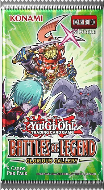 Battles of Legend: Glorious Gallery comes with more extended art cards, chibi cards, and blinged-out upgrades to make your Deck as glorious as it can be!Gallery Exhibit #1: More extended art cards! Hot on the heels of Rarity Collection 5's extended art cards, we've got 10 more in Battles of Legend, including Dragon Master Magia, Red Supernova Dragon, and Dominus Impulse. All are available in Ultra Rare and Starlight Rare versions. This is just the latest batch, with more extended art cards coming later this year! Gallery Exhibit #2: More chibi cards! Get ready for another round of 10 cute-as-a-button chibi variant art cards. As you can see from the wrappers, this batch includes Dark Magician Girl, Tour Guide From the Underworld, Evolzar Laggia, Legendary Six Samurai - Shi En, Vampire Lord, and Summoned Skull. And all of them are fully playable versions of those monsters. There's even a chibi version of Exodia the Forbidden One. Obliterate! There's never been so much game-winning power packed in such a tiny package! Gallery Exhibit #3: Foil-ups and upgrades! Since every Battles of Legend pack is all-foil (4 Ultra Rares + 1 Secret Rare), we've included lots of cards that are foils for the first time so you can bling out your Deck. There are also lots of new chances at previously hard-to-get foils like El Shaddoll Anoyatyllis, Shooting Majestic Star Dragon, the trio of Adreus, Keeper of Armageddon, Armades, Keeper of Boundaries, and Tiras, Keeper of Genesis, and many more. Dozens of Brand-New Cards! Battles of Legend: Glorious Gallery also has 40 new cards for a variety of Decks, from "Shaddoll" and "tellarknight" to "Junk" monsters and "Endymion". Deploy a new "Shaddoll" Continuous Spell Card that lets you Tribute any "Shaddoll" Fusion Monster to Fusion Summon another from your Extra Deck! Rank-up into a new "Stellarknight" Xyz Monster that can power up to 5400 ATK, ignore your opponent's effects, and shuffle their monsters back into the Deck. Reveal Masked HERO Fountain in your hand to Special Summon any "HERO" monster from your hand. And don't miss out on Surprise Fusion, a Spell Card that's full of surprises!(Also available: Matching chibis, like chibi El Shaddoll Construct and chibi Constellar Ptolemy M7!)